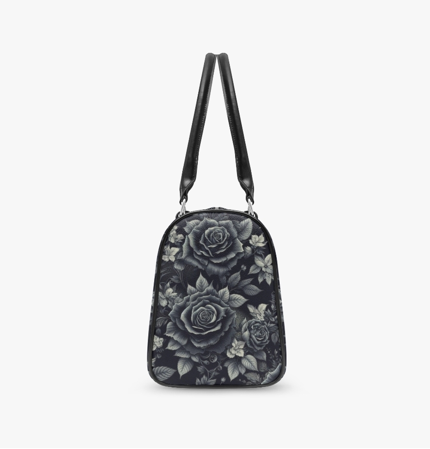 Gothic Black Rose Leather Bag - Dark Floral Travel Bag with Handles - Elegant Gray Roses Bag - Victorian Gothic Fashion Handbag | Free Ship