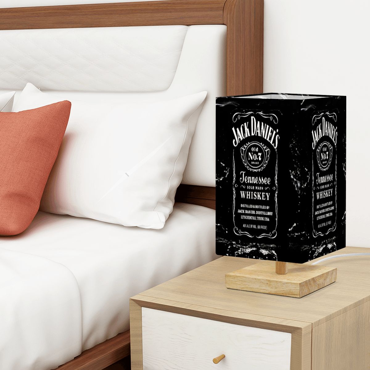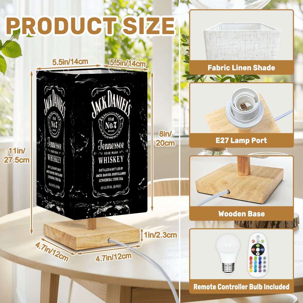 Jack Daniel's Whiskey Table Lamp, Wooden Base LED Desk Light, Remote, Bulb Included, Man Cave Gift