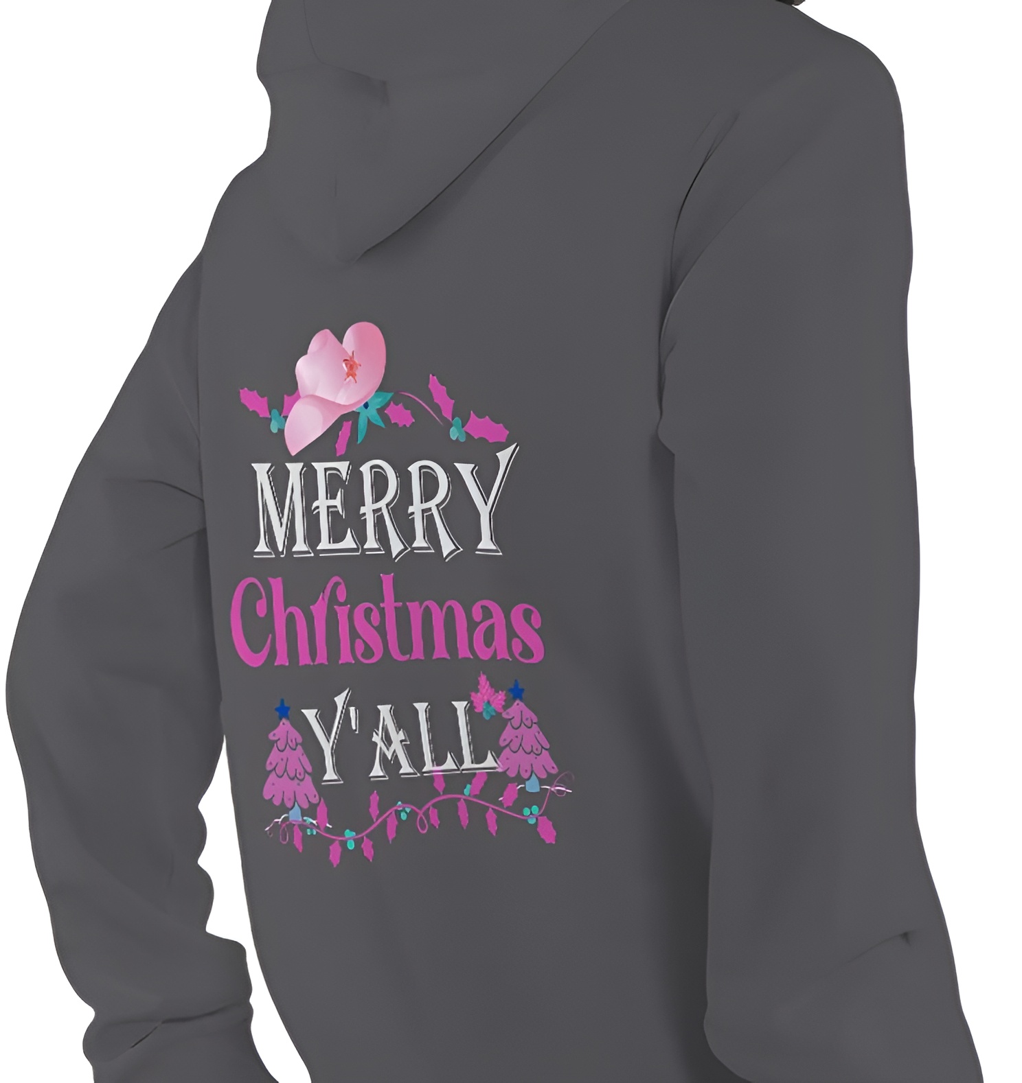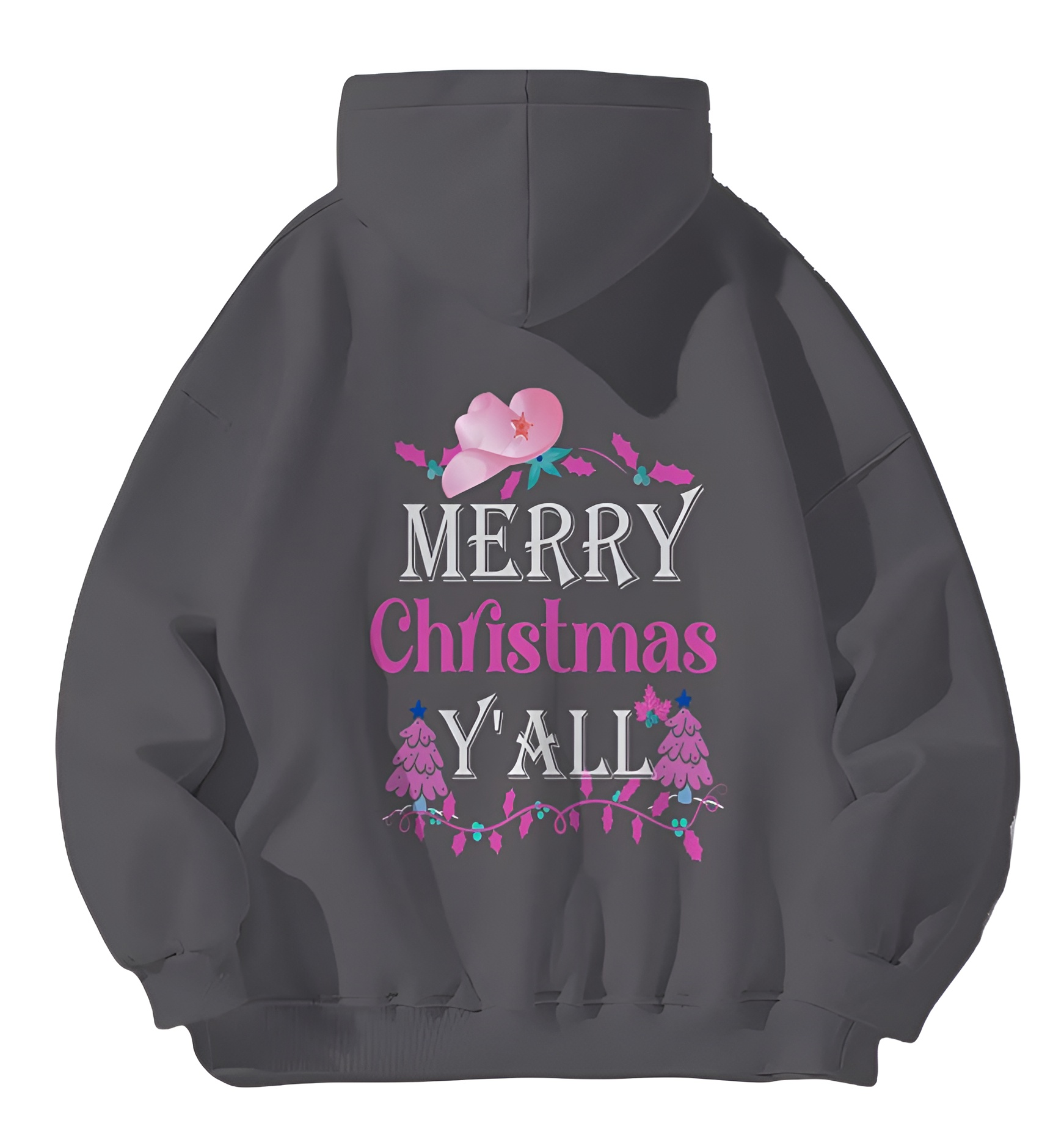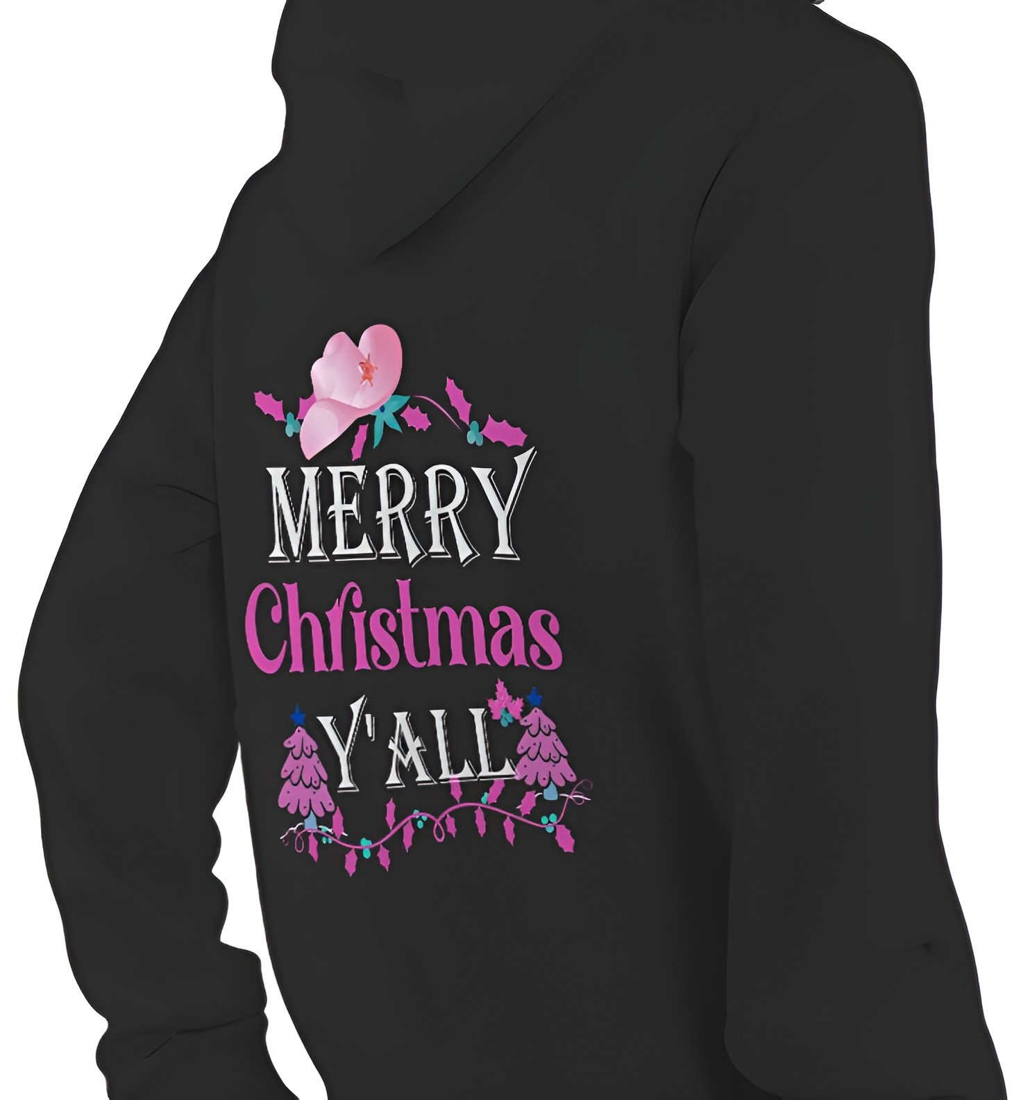 Celebrate the holidays with Southern charm in this "Merry Christmas Y'all" hoodie! This festive black pullover features a beautiful design with a pink watercolor cowboy hat adorned with a star, elegant white "MERRY" and "Y'ALL" lettering, and vibrant pink "Christmas" script. The design is completed with pink Christmas trees, colorful holiday lights, and festive holly accents, creating the perfect blend of Western style and holiday cheer. Made from soft, comfortable fabric, this unisex hoodie is perfect for country Christmas celebrations, holiday gatherings, casual winter wear, or showing off your Southern roots during the festive season. The cozy hood and kangaroo pocket provide warmth and functionality while the eye-catching design makes a bold statement. Available in sizes up to XXL for the perfect fit. Makes an excellent gift for cowgirls, country music lovers, Southern belle friends, rodeo enthusiasts, or anyone who loves combining their Western lifestyle with holiday festivities!