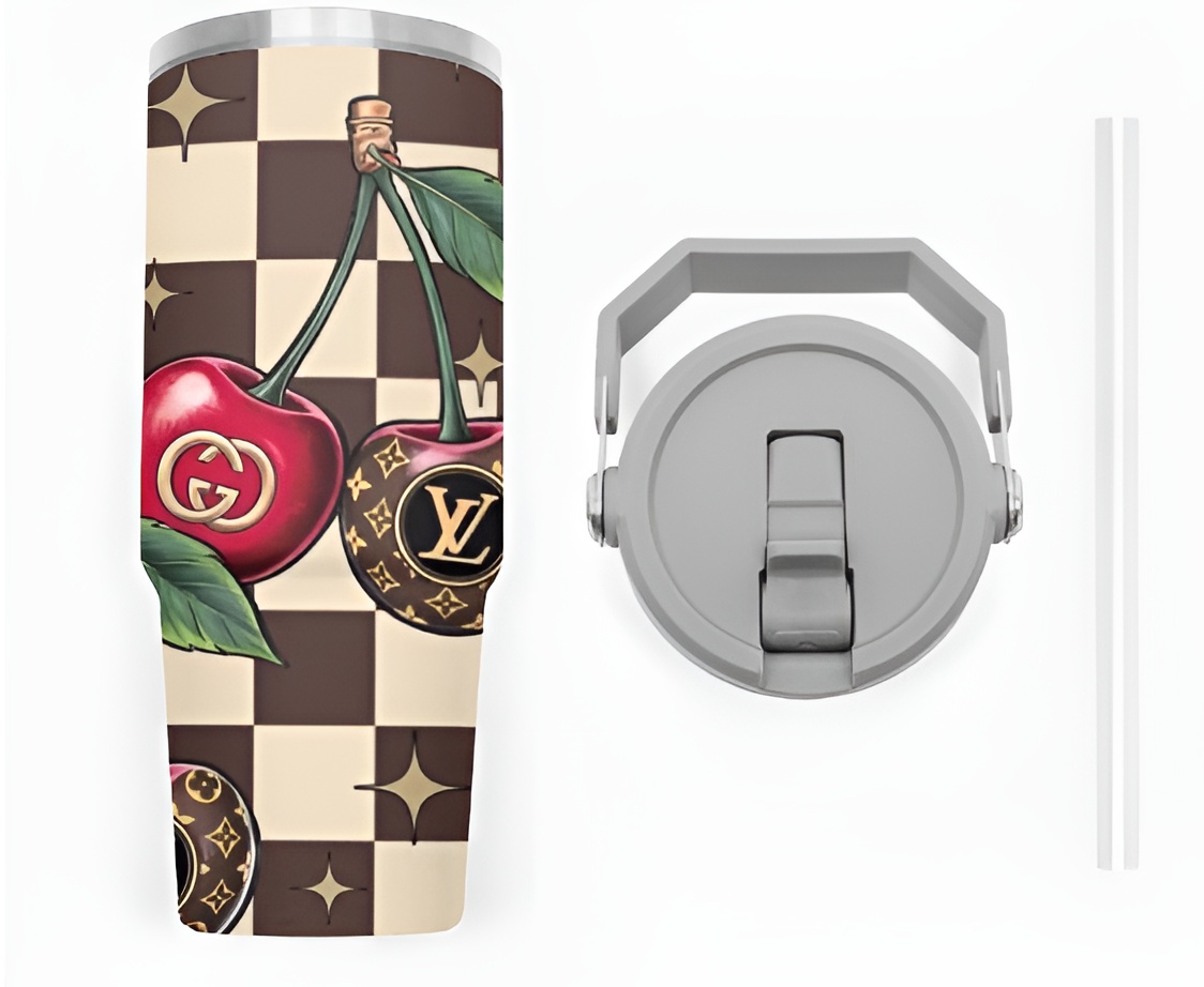 *Luxury Cherries 🍒 Design | 30 oz Flip Straw Tumbler | Trendy Designer inspired | Free Ship*