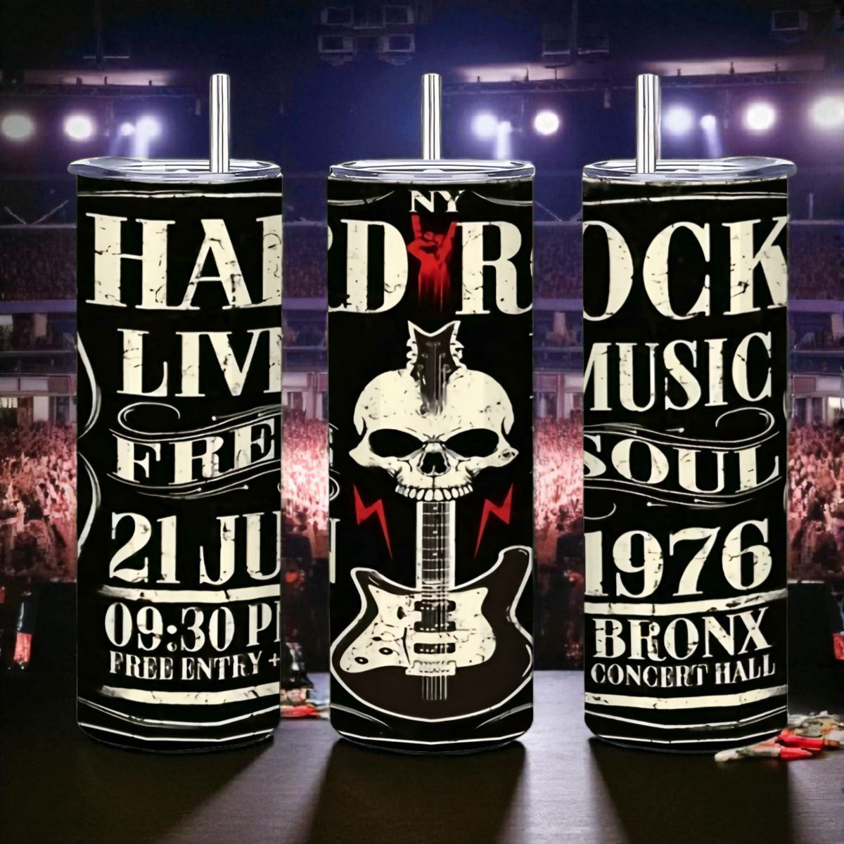 Hard Rock Music Soul Tumbler | Vintage Concert Poster Design with Skull & Guitar Travel Cup | Free Ship