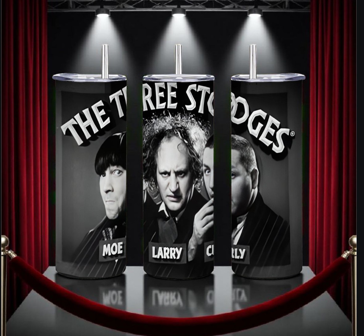 Collectors, A tribute to classic slapstick comedy! This 20oz skinny tumbler features the unforgettable trio, Moe, Larry, and Curly of "The Three Stooges," in their iconic black and white style. Perfect for fans of vintage comedy, retro TV, and timeless humor. This durable, insulated stainless steel tumbler is great for keeping drinks cold or hot and makes a hilarious, unique gift for dads, grandpas, or any classic movie buff. Comes with a straw and lid. It’s a great way to show off your love for the original kings of comedy!