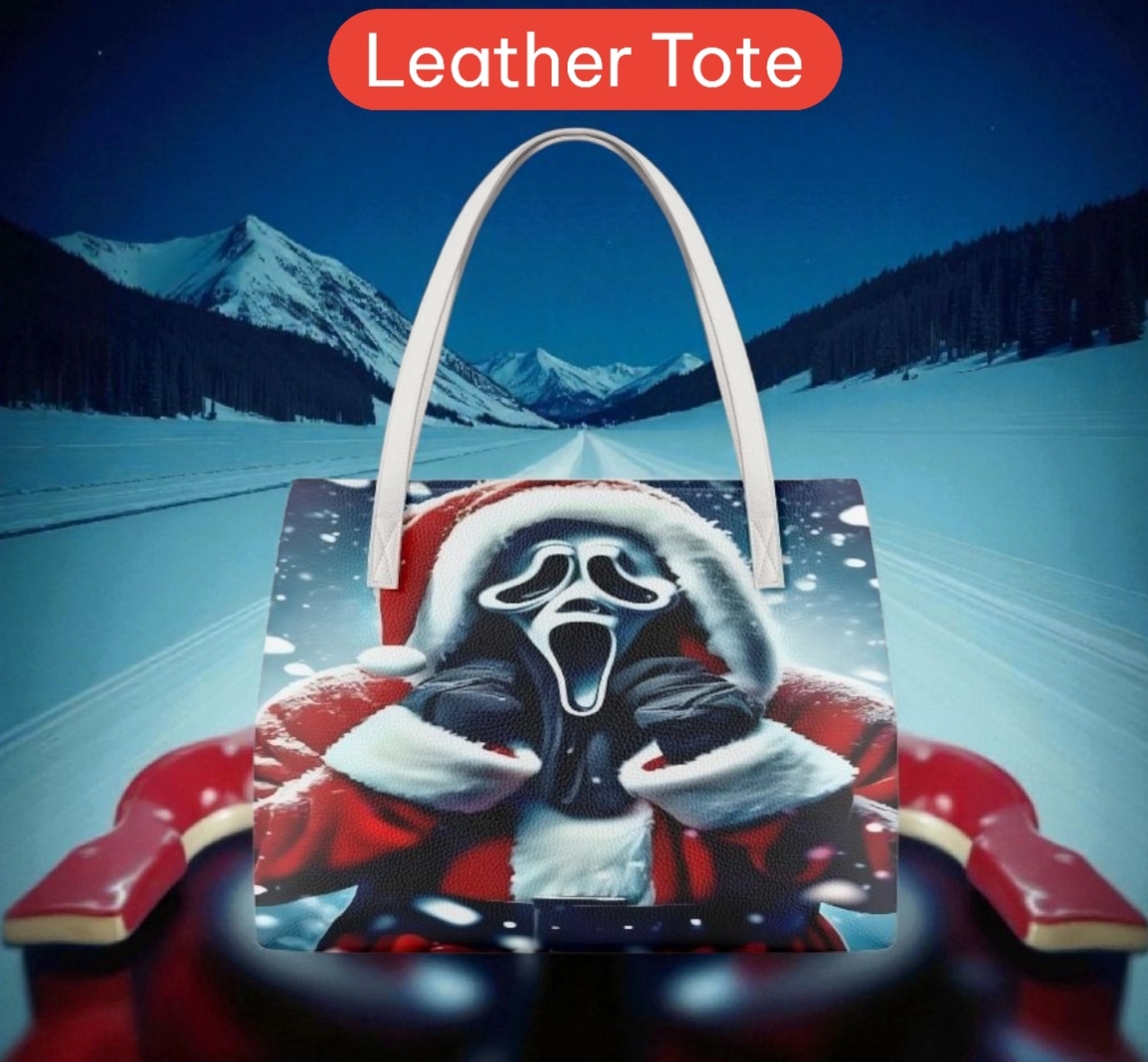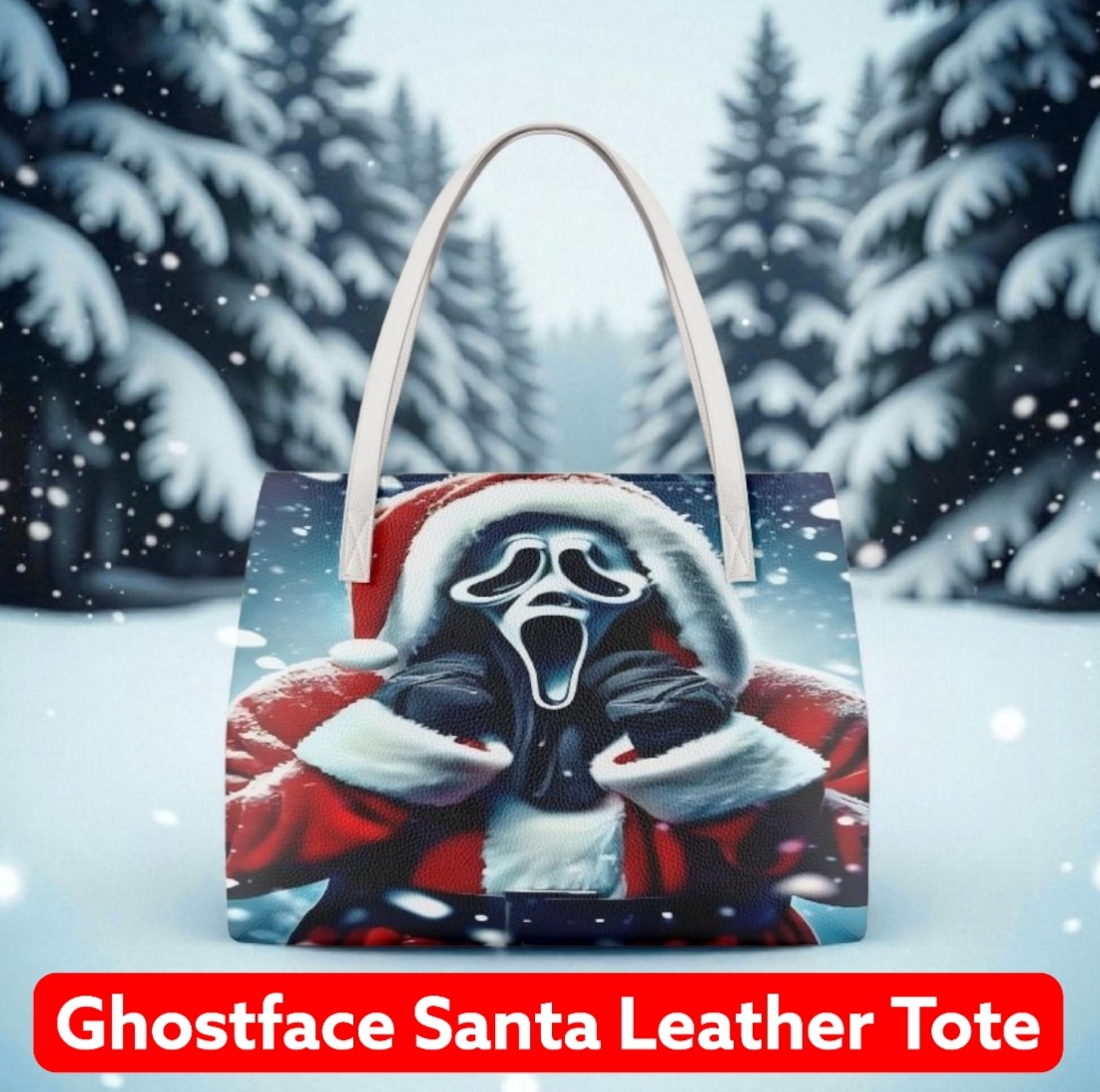 Ghostface Santa Leather Tote Bag | Scream Christmas Horror | Santa Claus Slasher Design | Holiday Horror Fan Bag | Free Shi0