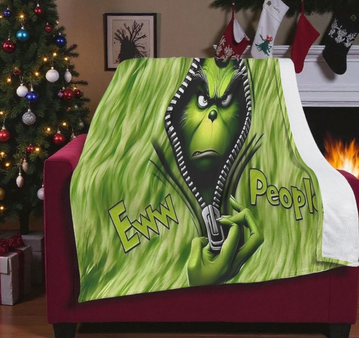 Limited Edition Grinch Eww People Blanket | Funny Antisocial Fleece Throw | Sarcastic Introvert Gift | 79x60 Soft Cozy Grinch Blanket | Free Ship