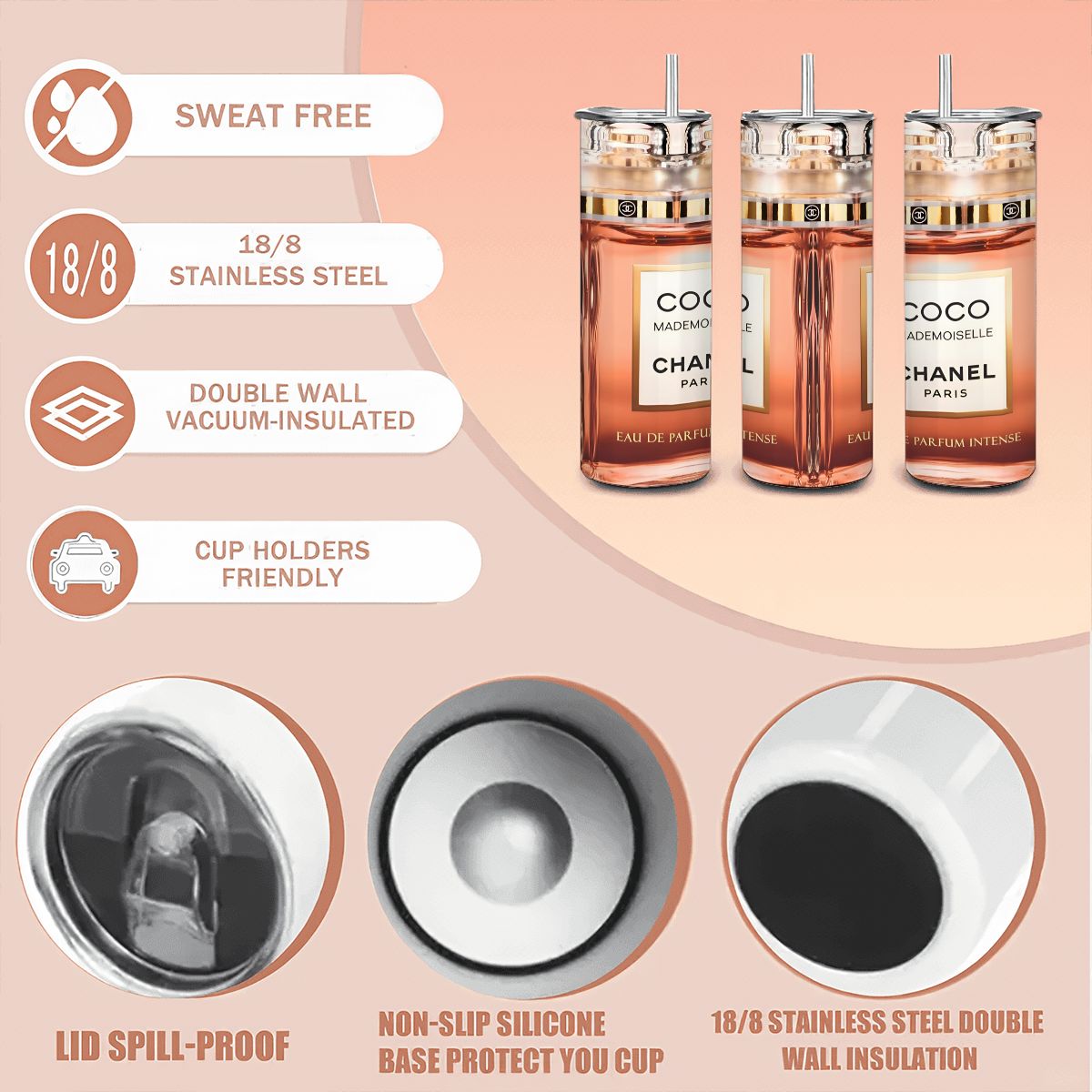 Bougie Perfume Insulated Skinny Tumbler | Designer-Inspired Paris Fragrance Mug | Fashionable Gift | Free Ship