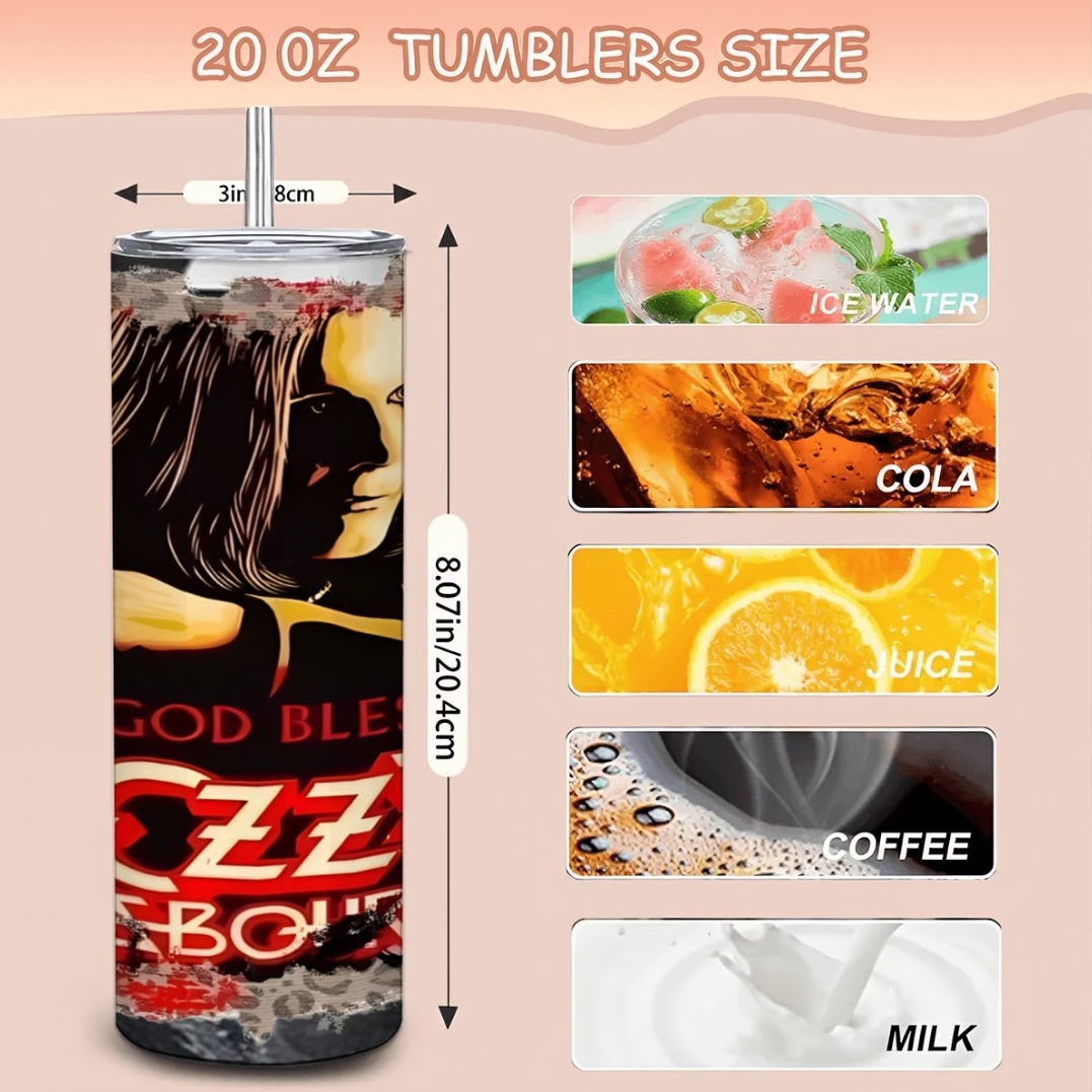 Ozzy Osbourne "God Bless" Skinny Tumbler | Heavy Metal Travel Mug | Music Fan Gift | Rock & Roll Drinkware | Free Ship