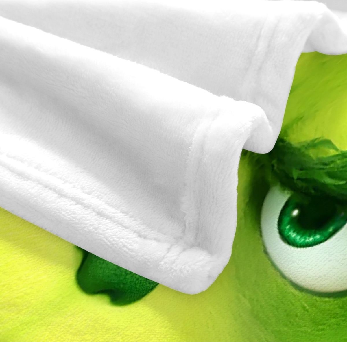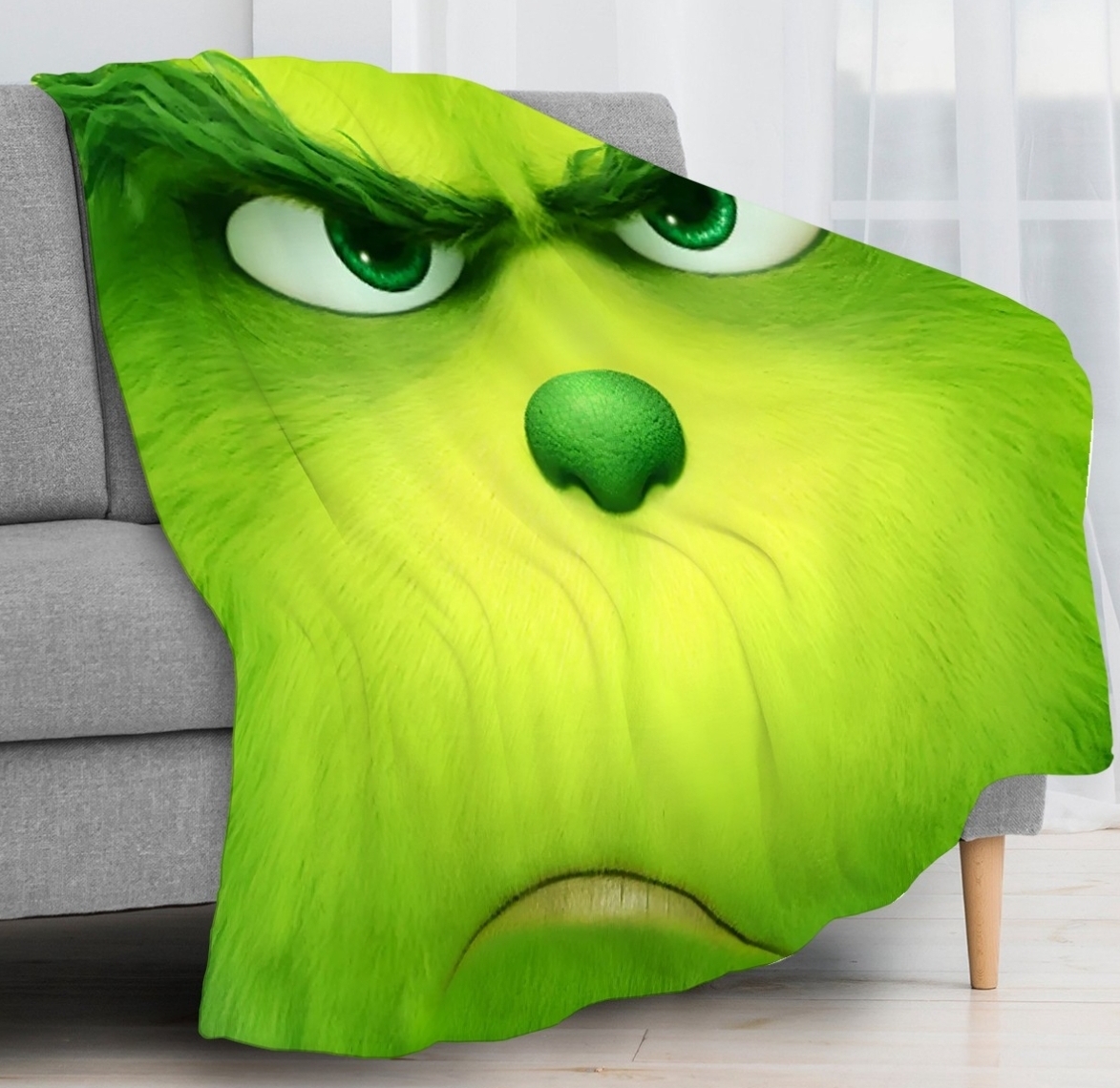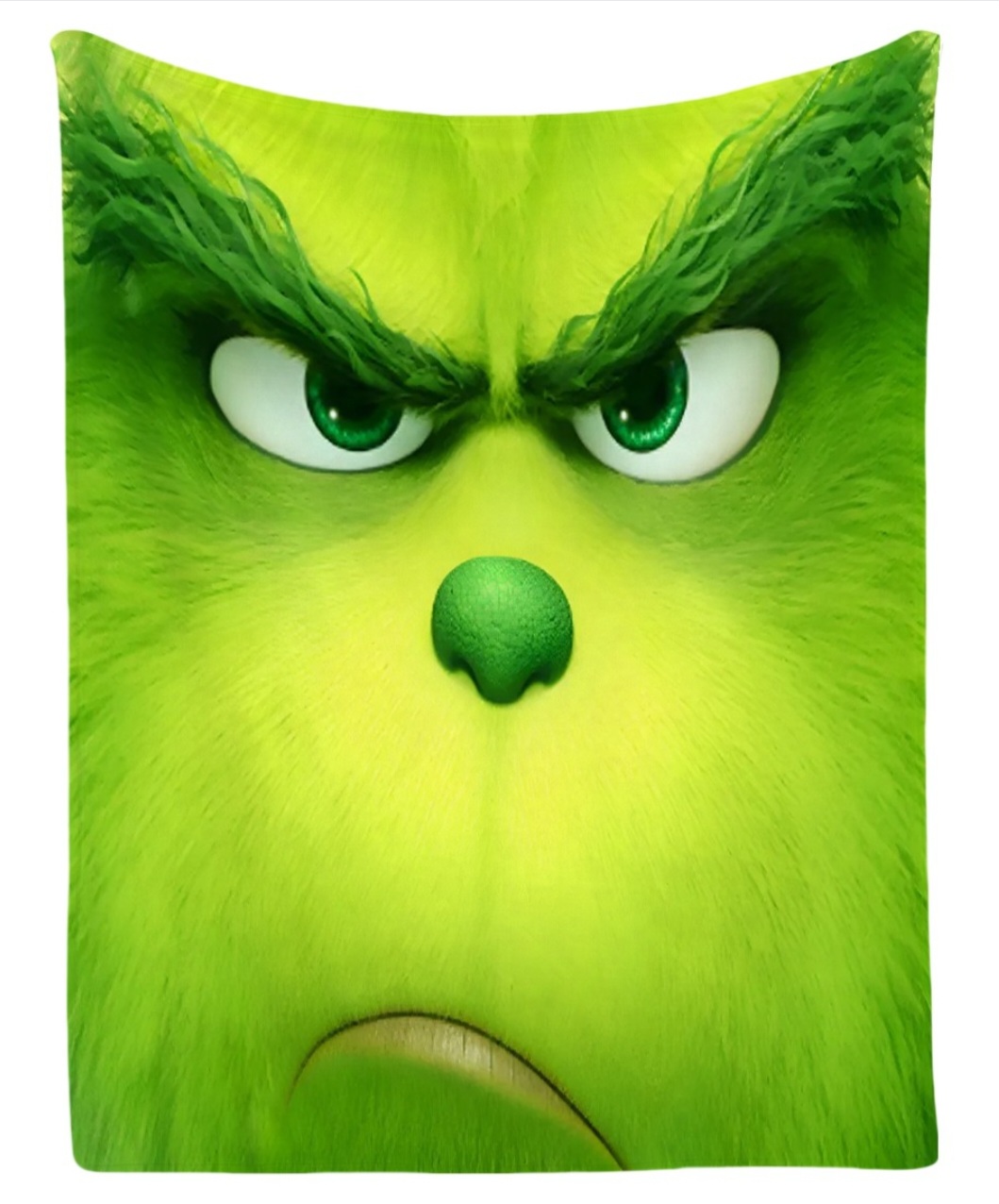 Get cozy with your favorite holiday villain! This eye-catching Grinch Face Blanket features the iconic grumpy green face in stunning detail, making it a fun and festive addition to your holiday decor. It's the perfect plush throw for snuggling up on the couch while watching Dr. Seuss's How the Grinch Stole Christmas! This ultra-soft blanket makes a fantastic gift for any Grinch fan on your list.