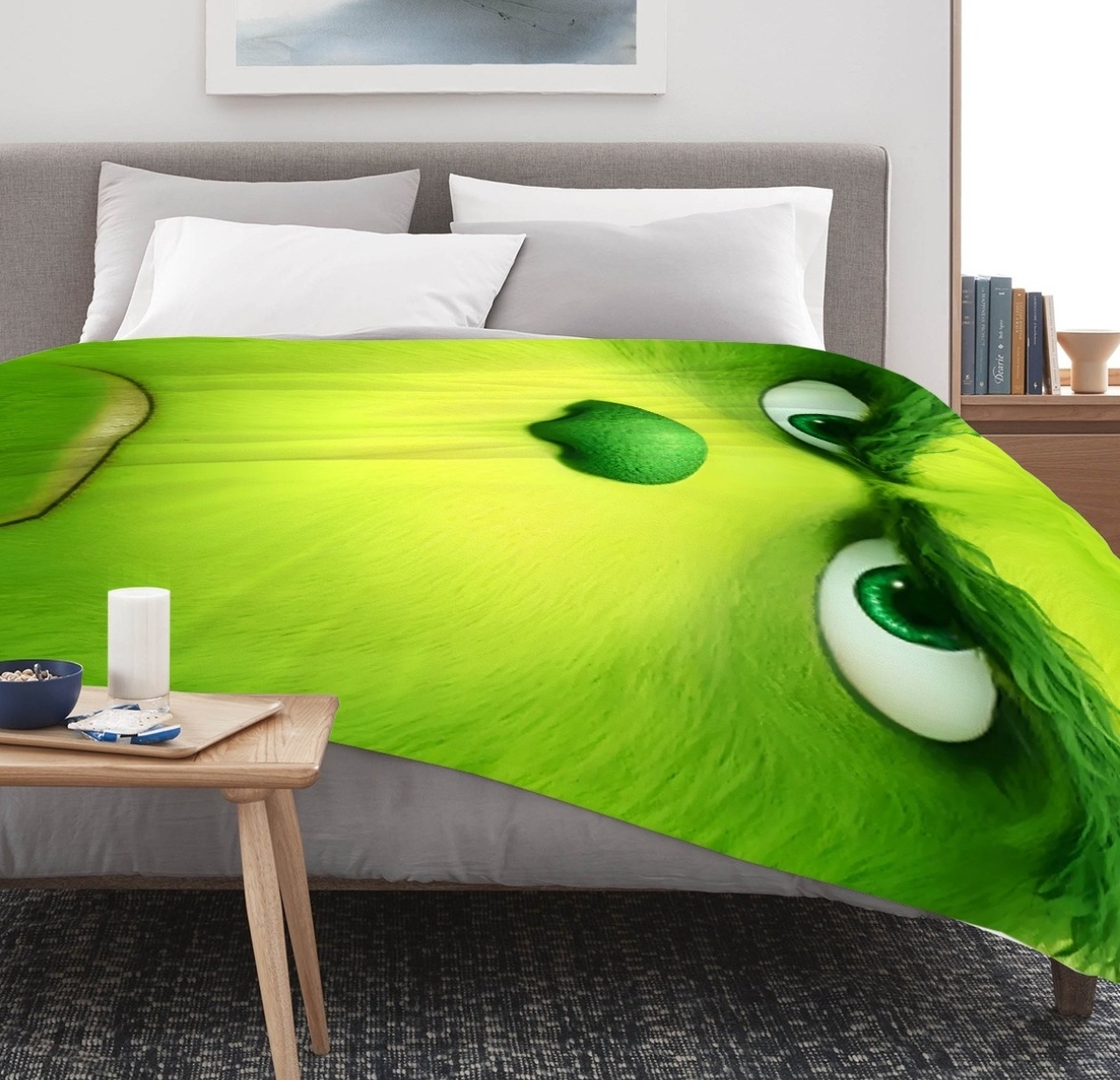 Grinch Face Holiday Blanket | Fuzzy Max Plush Throw | Dr. Seuss Christmas Home Decor Gift