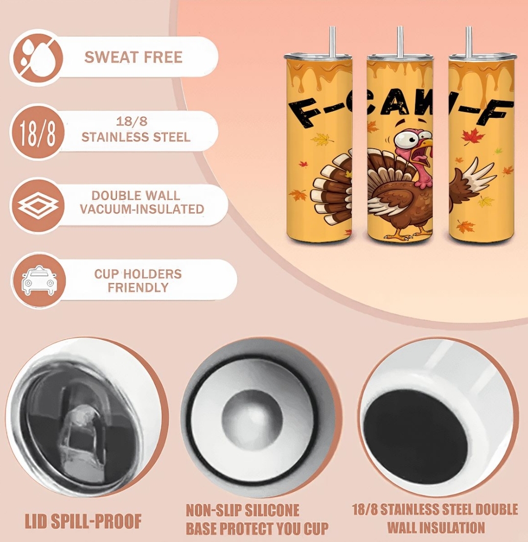 Frantic Turkey Gobble Gobble "F" Bomb 20oz Skinny Tumbler "FCAWF"
