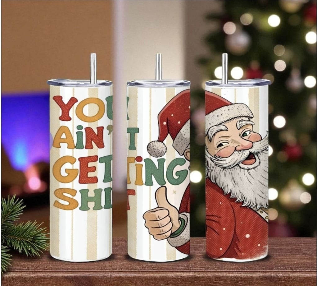​"You Ain't Getting Shit" Funny Santa Tumbler | 20oz Skinny Sublimation
