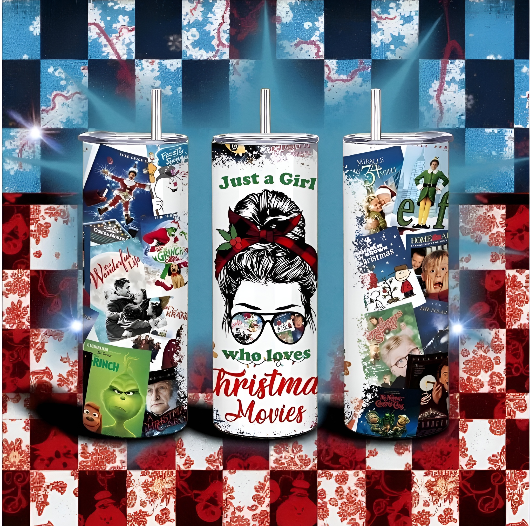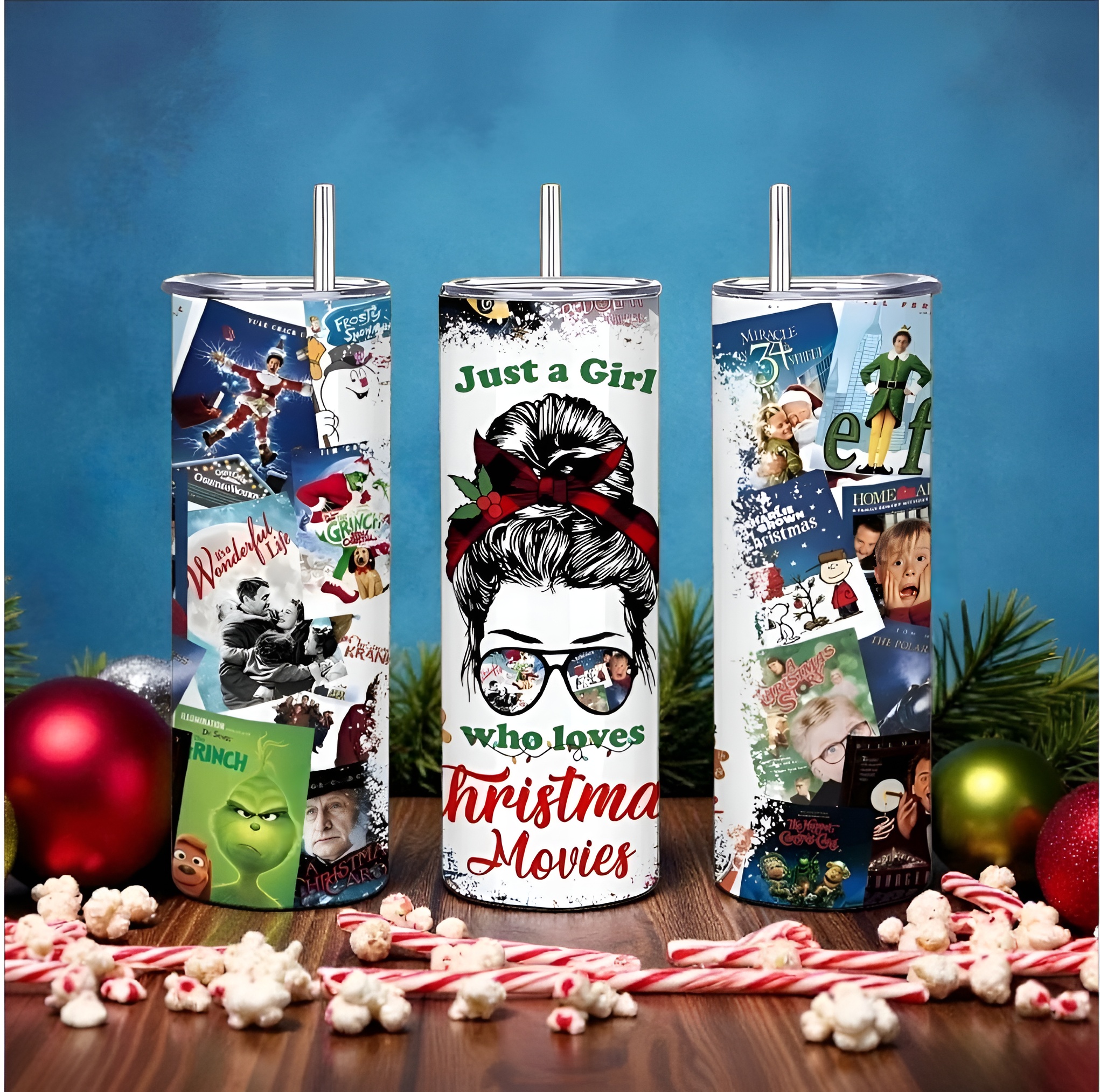 Get cozy and celebrate the most wonderful time of the year with this "Just a Girl Who Loves Christmas Movies" Tumbler!