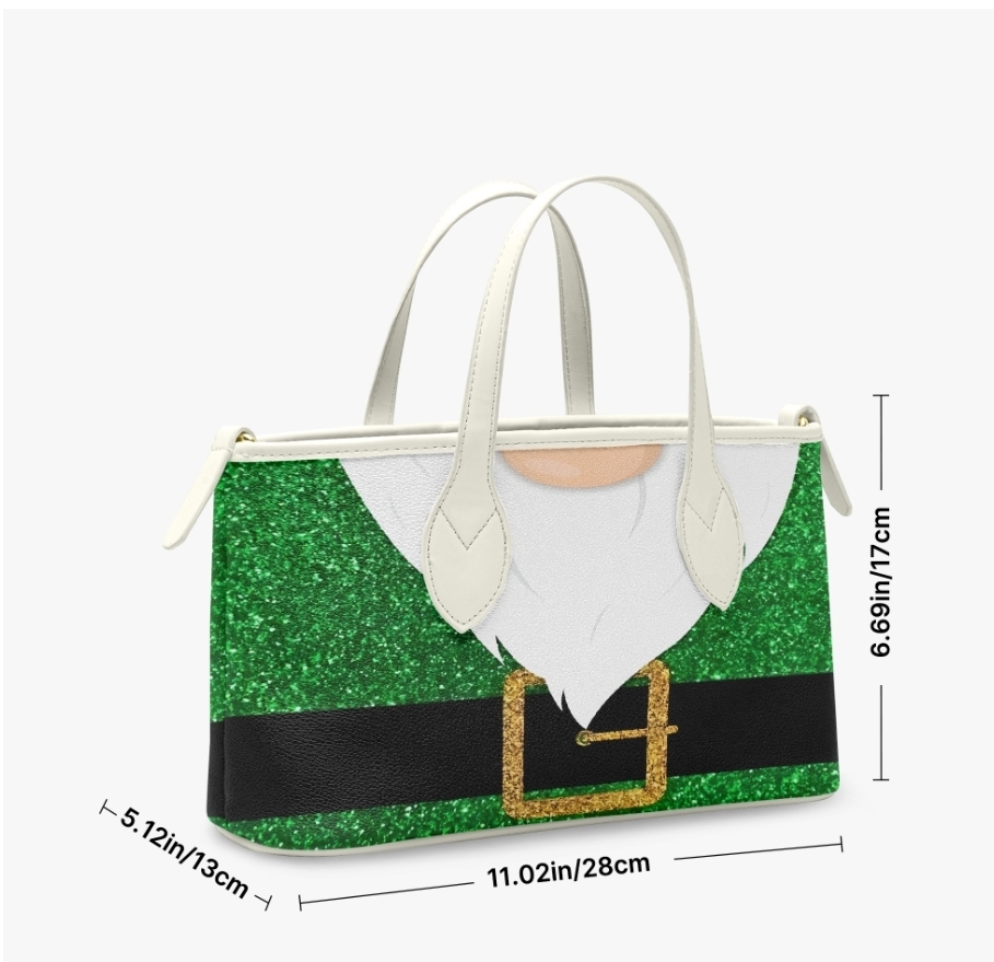glitter green bag, elf costume bag, Grinch bag, Christmas crossover bag, holiday tote, Santa's helper bag, leather shoulder bag, festive accessories, novelty purse, unique Christmas gift, beard bag, holiday party purse, green glitter, Christmas outfit