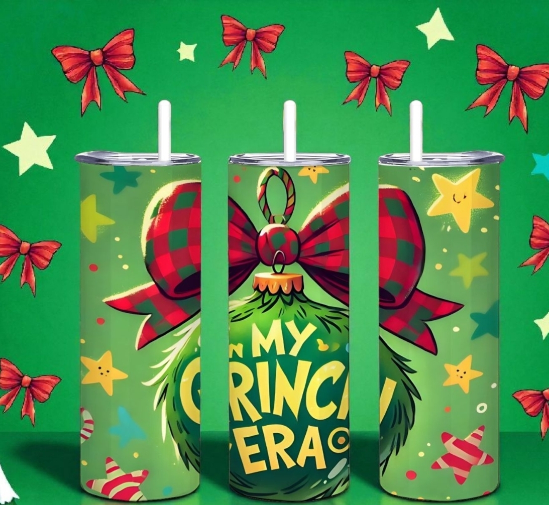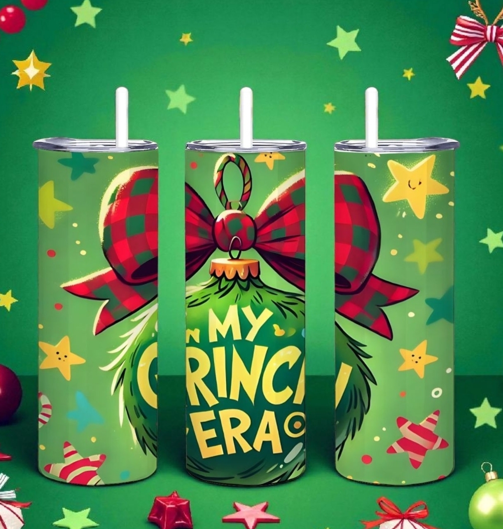 In My Grinch Era Tumbler - Funny Christmas 20oz Skinny Tumbler with Lid and Straw - Grinch Inspired Holiday Cup