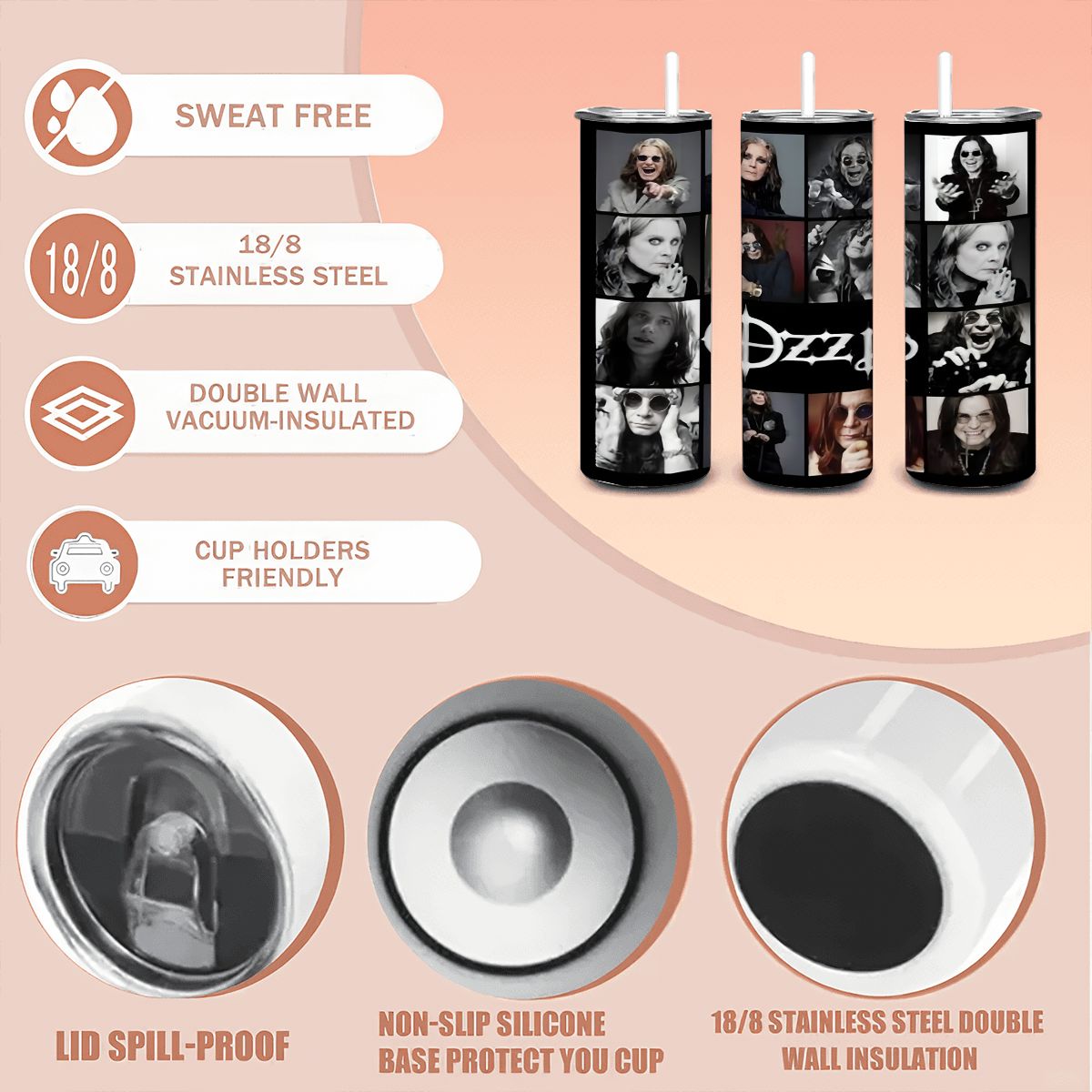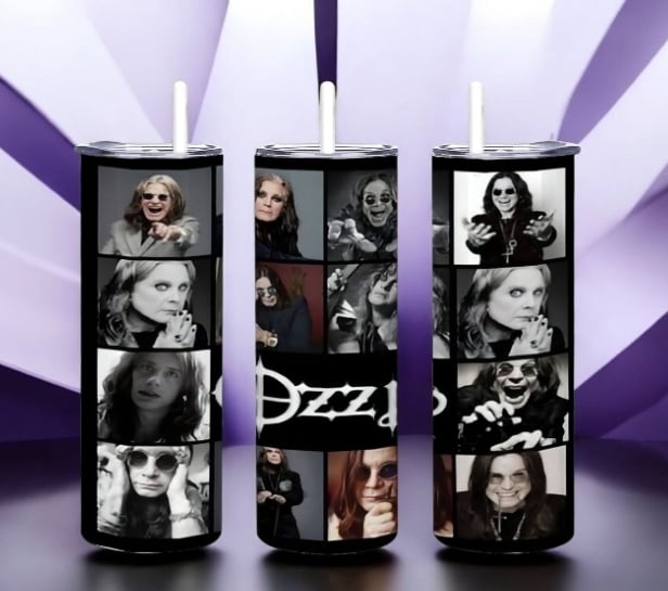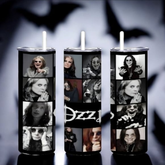 Ozzy Osbourne Photo Collage Tumbler 20oz Skinny, Black and White Rock Fan Gift, Heavy Metal Tribute