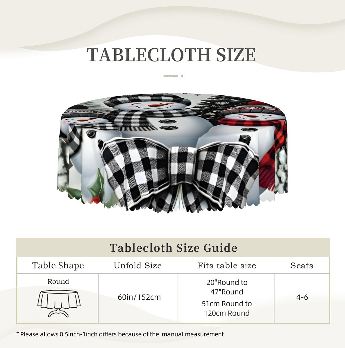 60 Inch Round Buffalo Plaid Snowman Tablecloth, Christmas Holiday Farmhouse Table Cover, Black and White Rustic Winter Decor