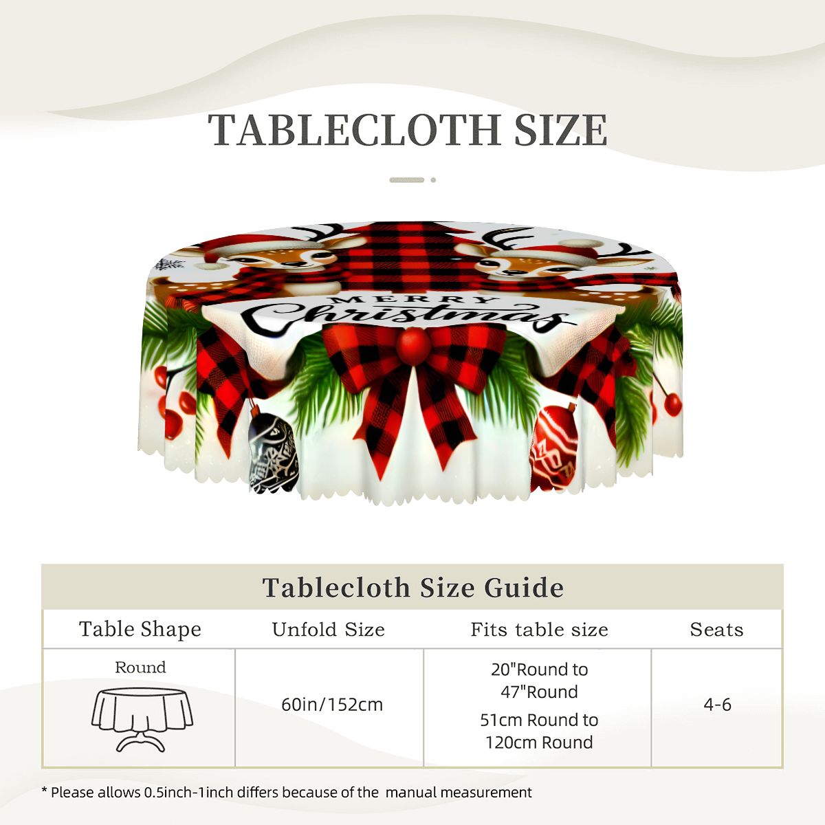60 Inch Round Buffalo Plaid Reindeer Tablecloth, Merry Christmas Farmhouse Table Cover, Red Black Rustic Holiday Decor