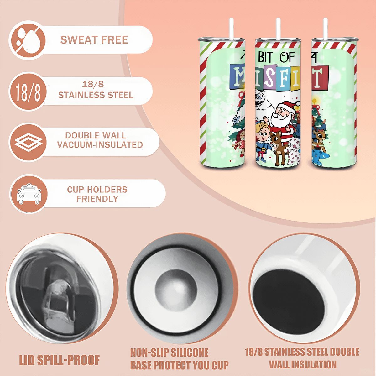 Misfit Christmas Tumbler 20oz Skinny, Parody Fan Gift for Him or Her, Classic Holiday Cartoon