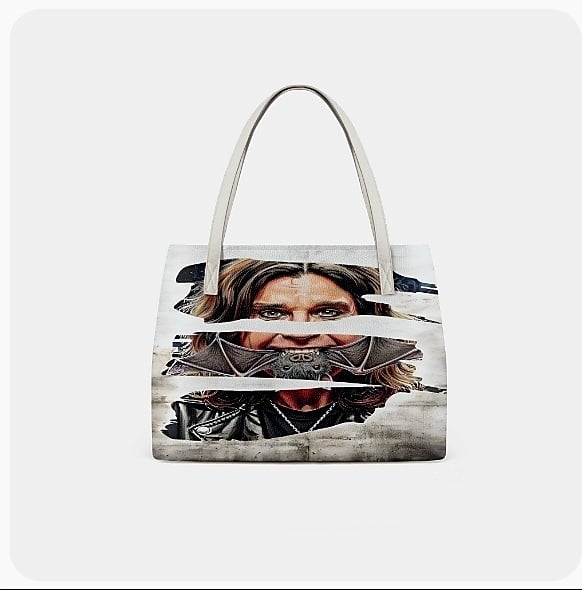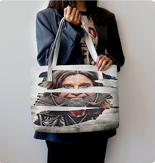 Ozzy Osbourne Leather Tote Bag, Bat Biting Rock Icon Shoulder Bag, Limited Edition Heavy Metal Gift, RnRdesign Exclusive , Free Ship