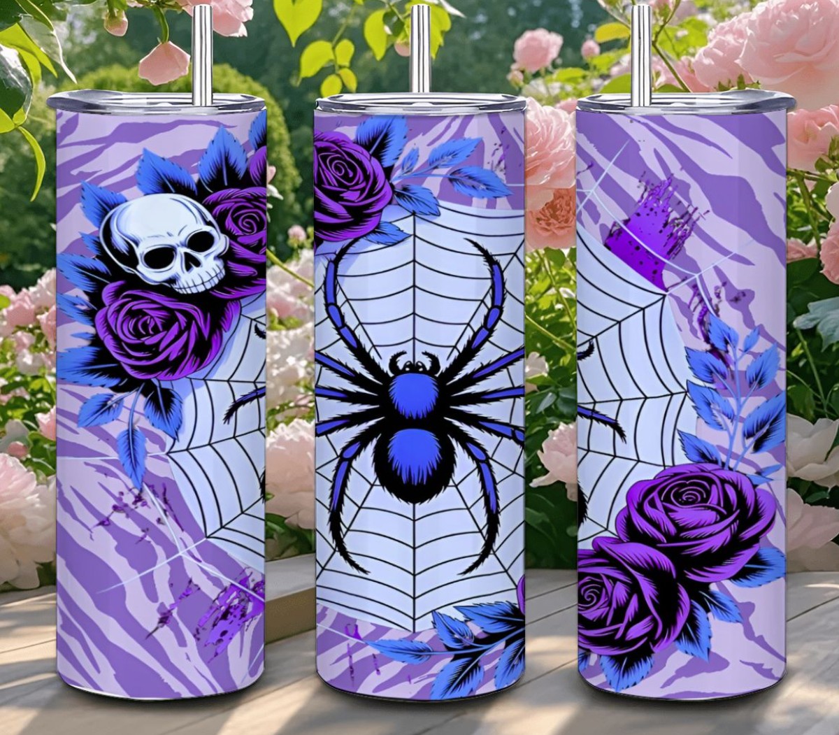 Gothic Purple Spider Web & Skull Rose Garden 20oz Stainless Tumbler | Free Ship