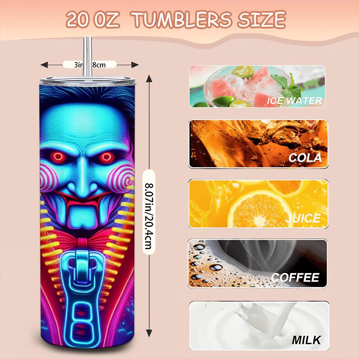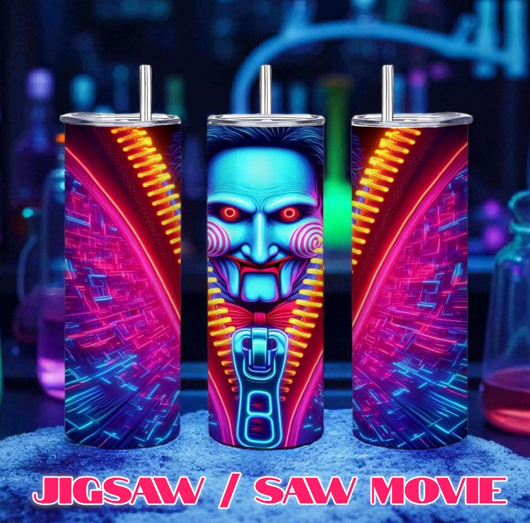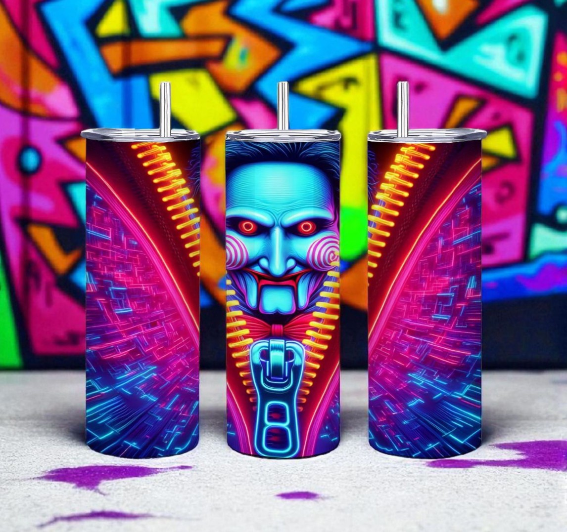 Movie SAW; Jigsaw Billy Tumbler | Zipper Design | 20oz Stainless Tumbler| Free Ship